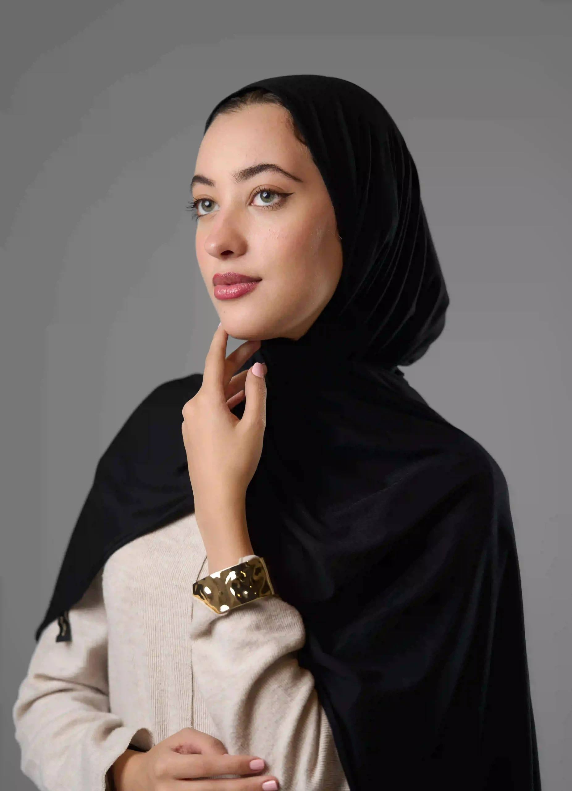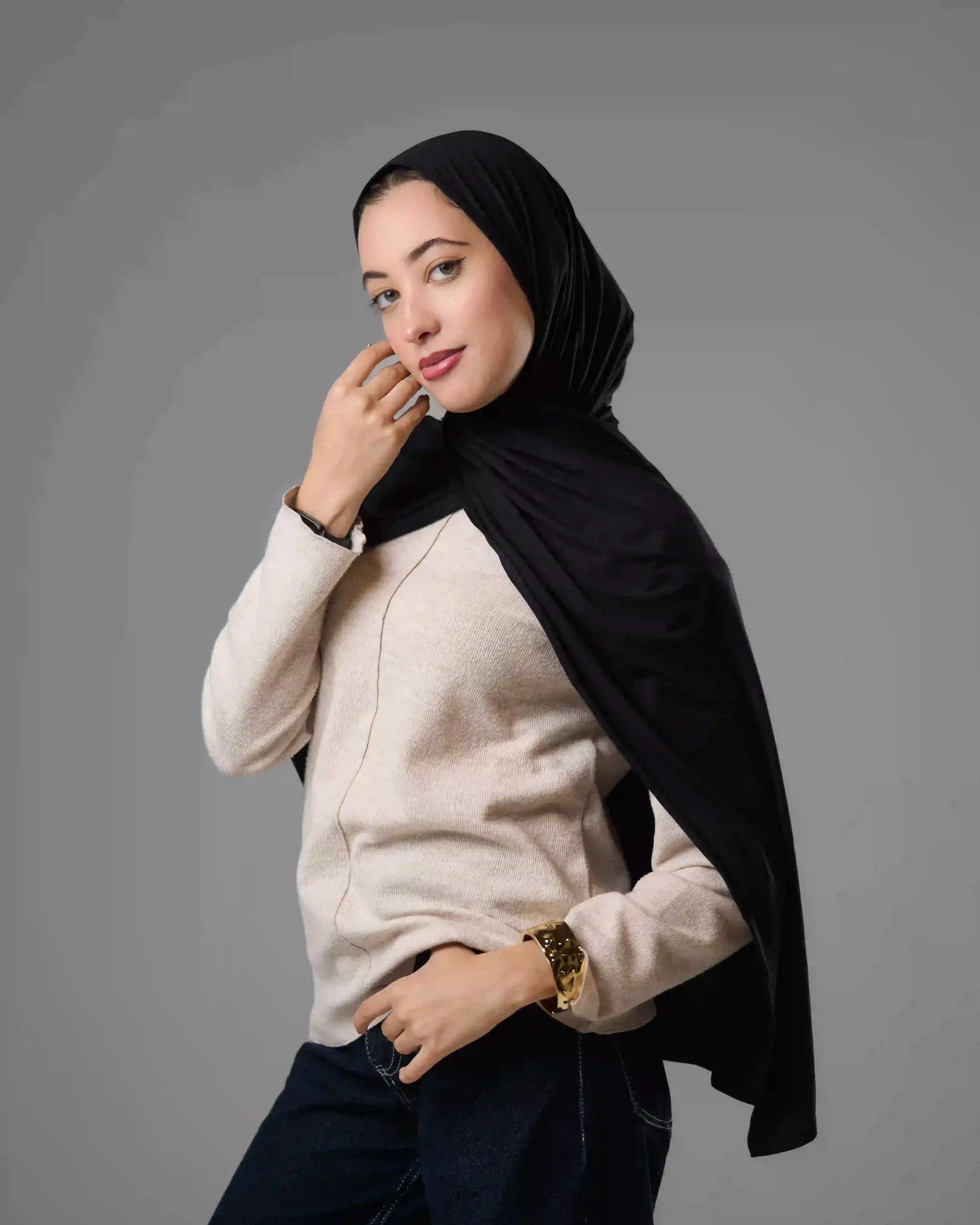 Clean, seamless jersey hijab made from soft, breathable Modal fabric for effortless everyday comfort.