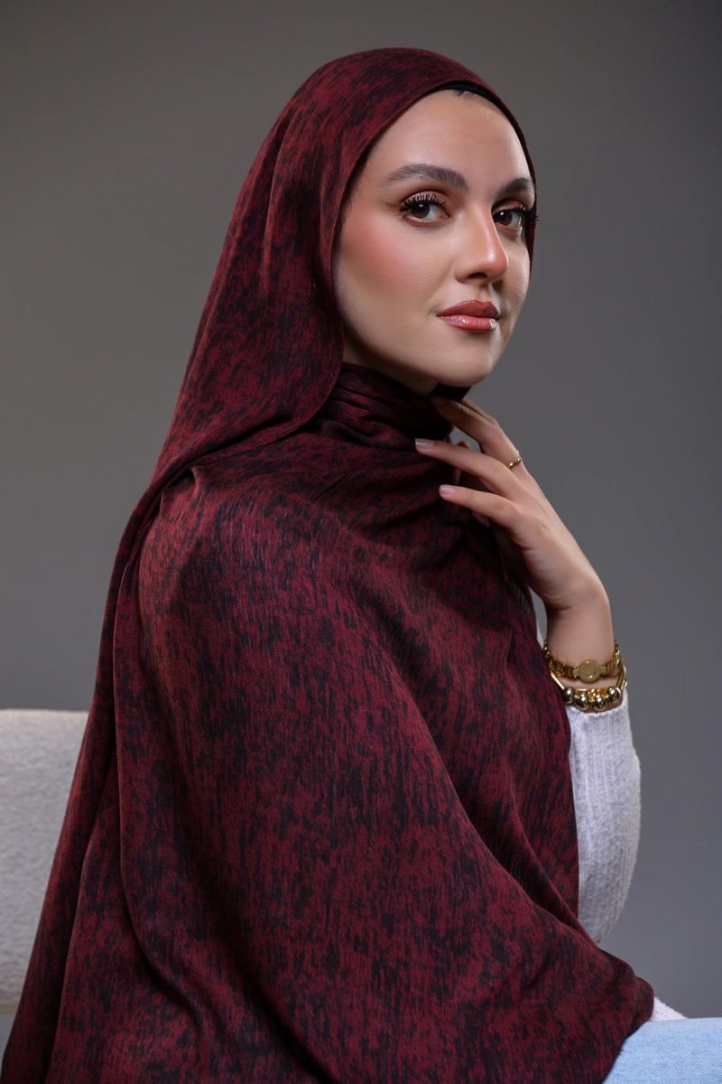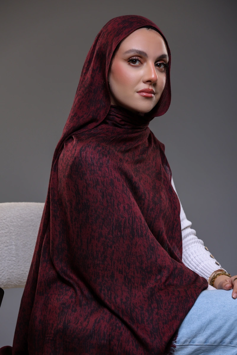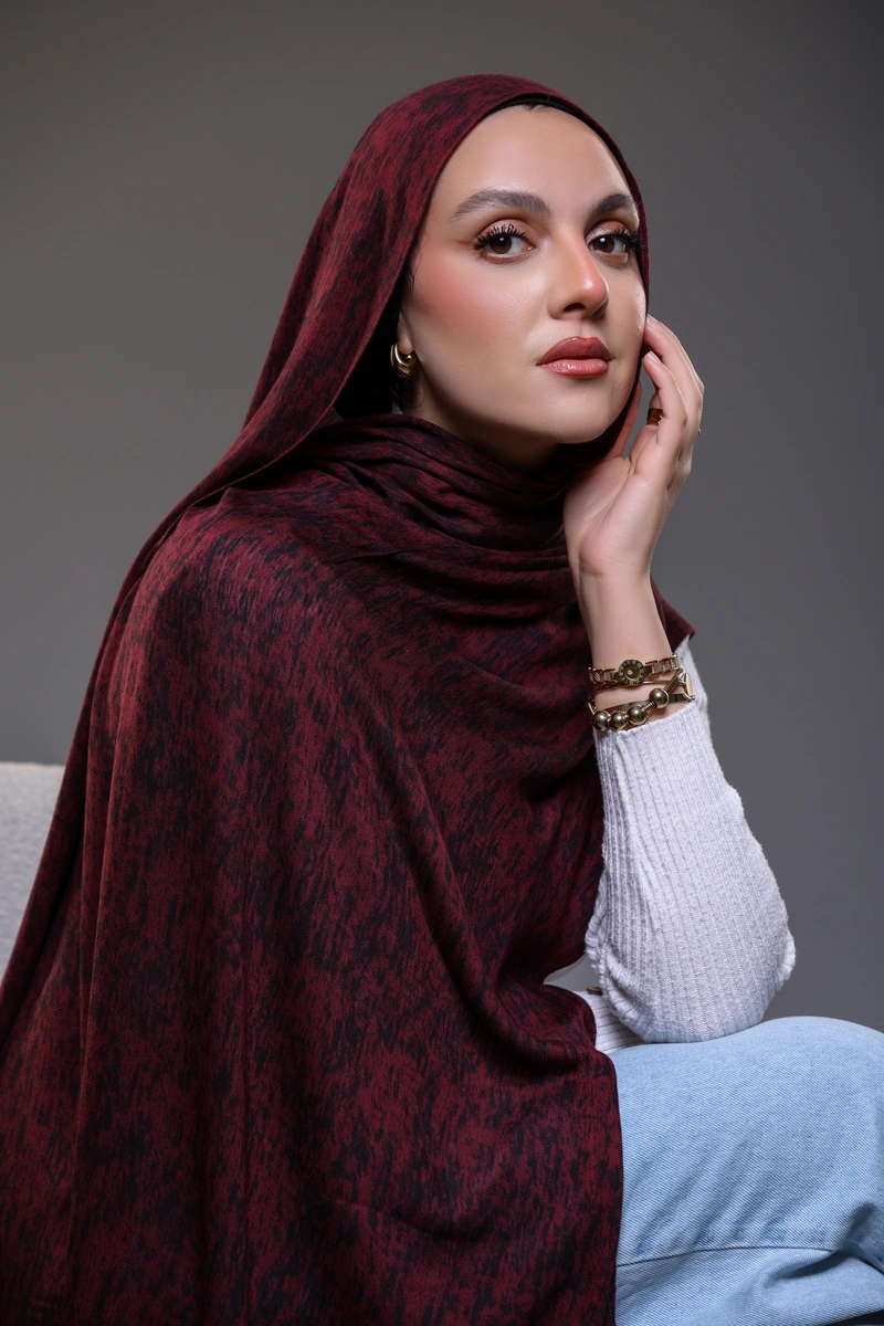 A soft, airy modal blend with a gentle sponge-like texture. Lightweight, breathable, and comfortable on the skin, with a subtle volume that gives the scarf a naturally elegant shape.