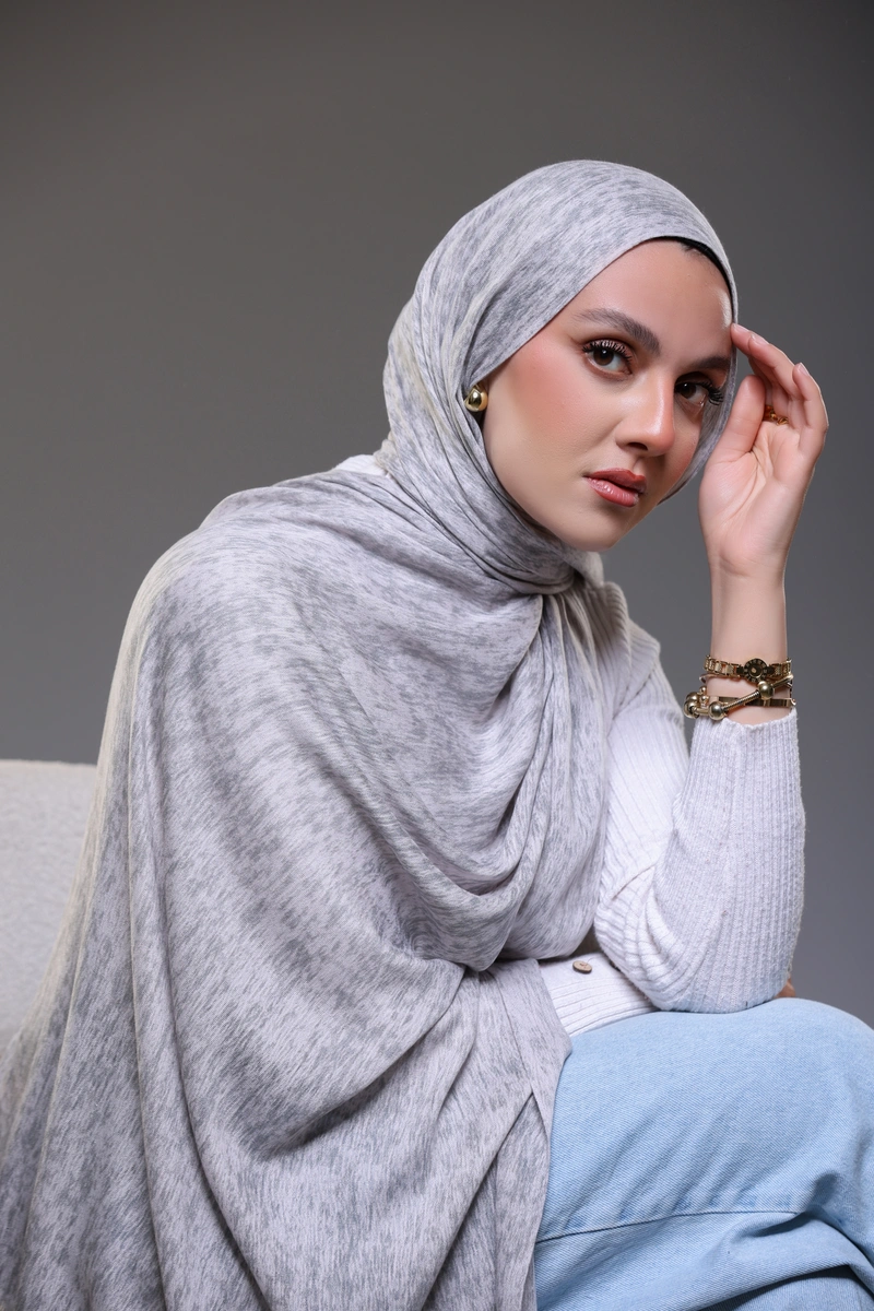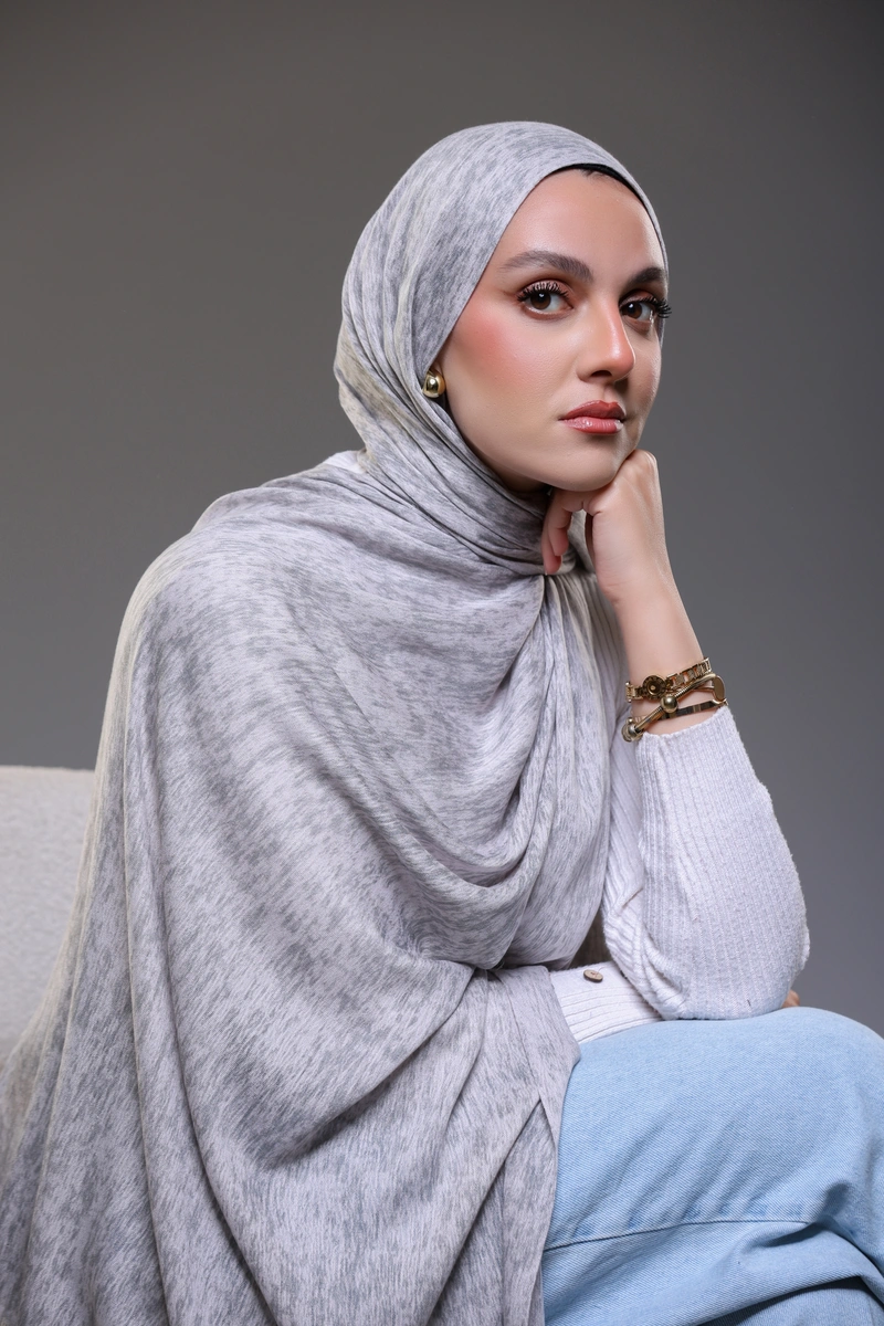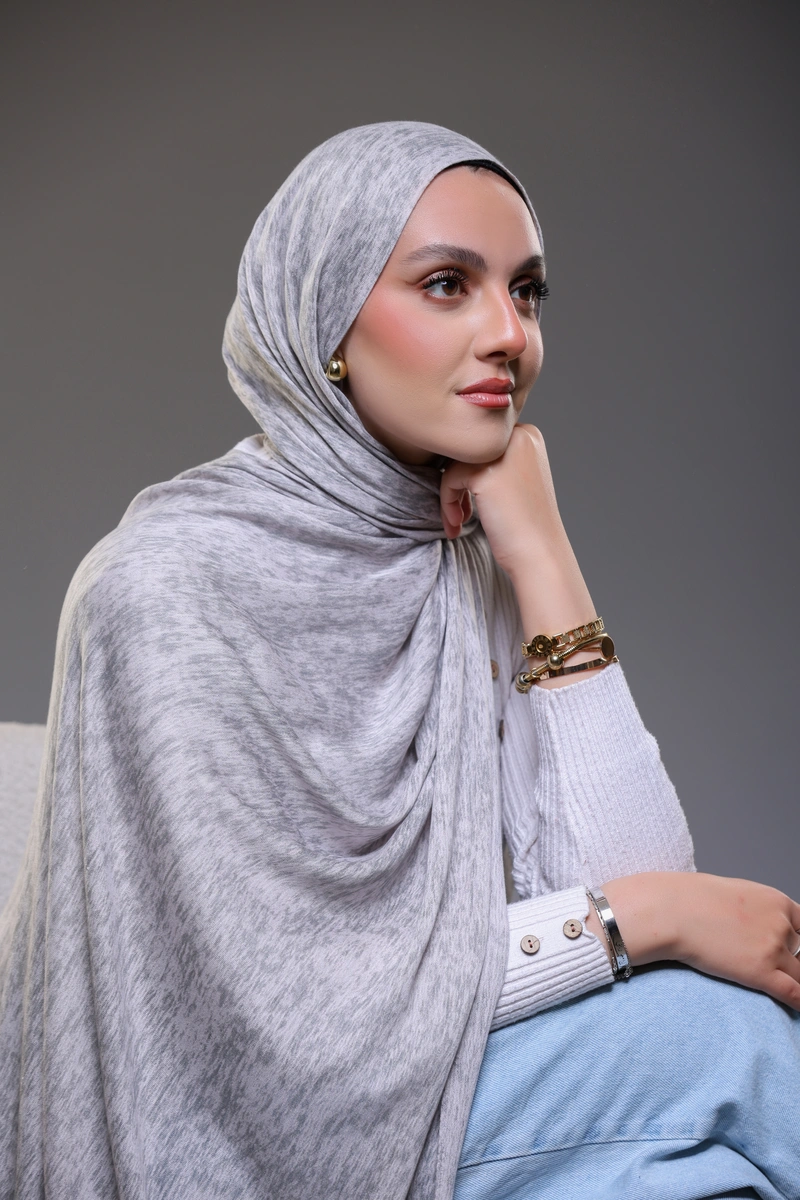 A soft, airy modal blend with a gentle sponge-like texture. Lightweight, breathable, and comfortable on the skin, with a subtle volume that gives the scarf a naturally elegant shape.