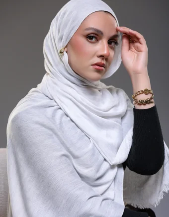 A soft, airy modal blend with a gentle sponge-like texture. Lightweight, breathable, and comfortable on the skin, with a subtle volume that gives the scarf a naturally elegant shape.