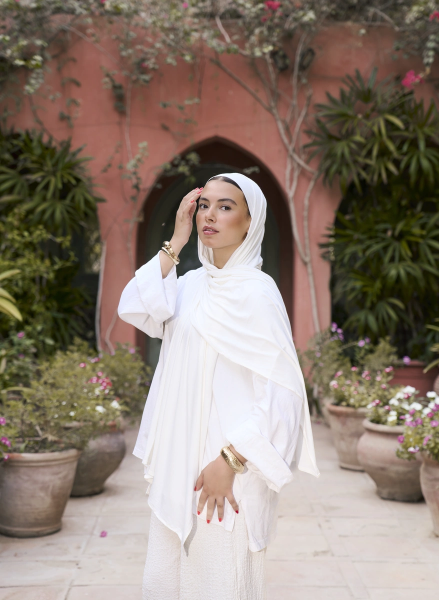 Crafted from premium Modal fibers with a natural stretch, this jersey fabric drapes beautifully on the body, offering a lightweight feel and a smooth, silky touch. Its breathable nature keeps you cool, while the gentle elasticity provides ease of movement. Comes with a matching-colored undercap for a seamless, coordinated look. Perfect for all-day wear with a refined, relaxed vibe.