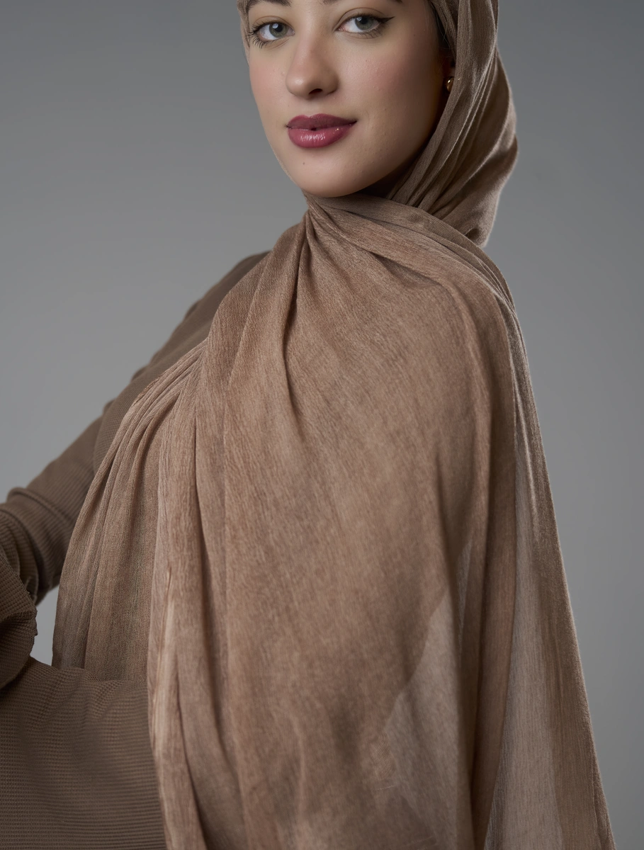 Discover timeless elegance with our Ruffled Hijab in coffee.