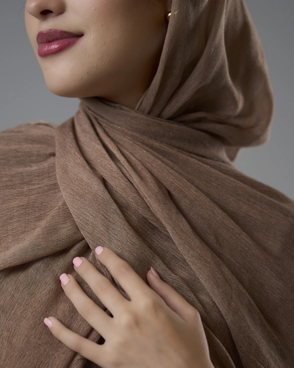 Elevate your everyday look with our coffee Ruffled Hijab — soft, breathable, and effortlessly stylish.