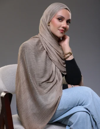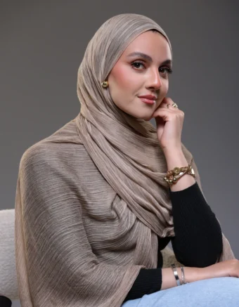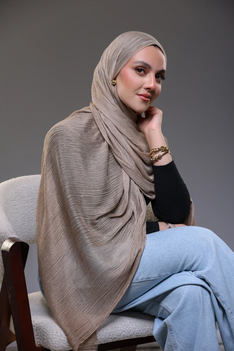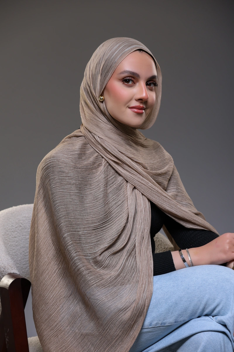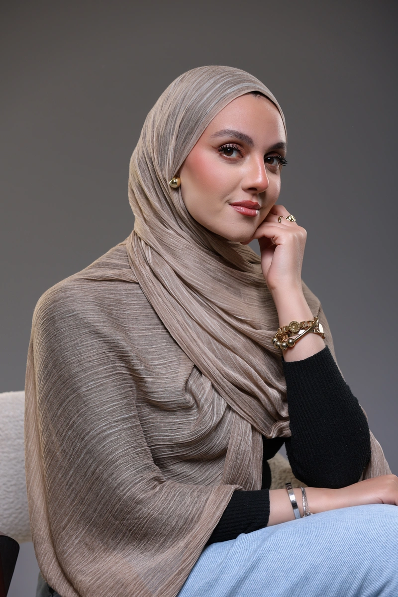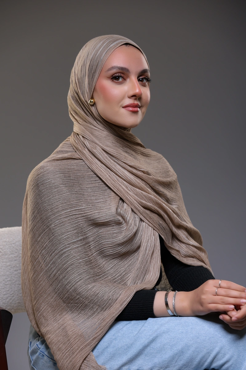 Discover timeless elegance with our Ruffled Hijab in Golden Beige .
