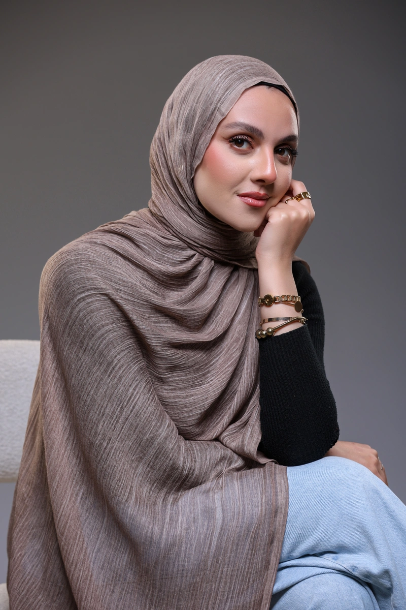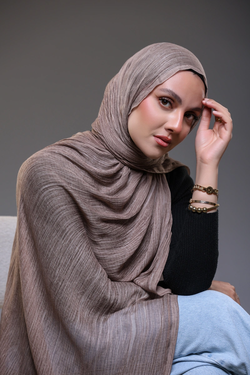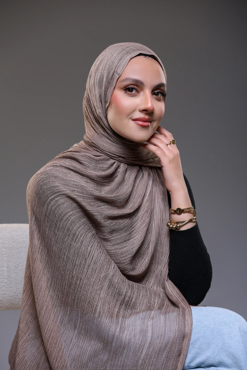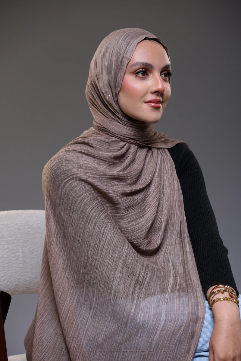 Discover timeless elegance with our Ruffled Hijab in Mocha.