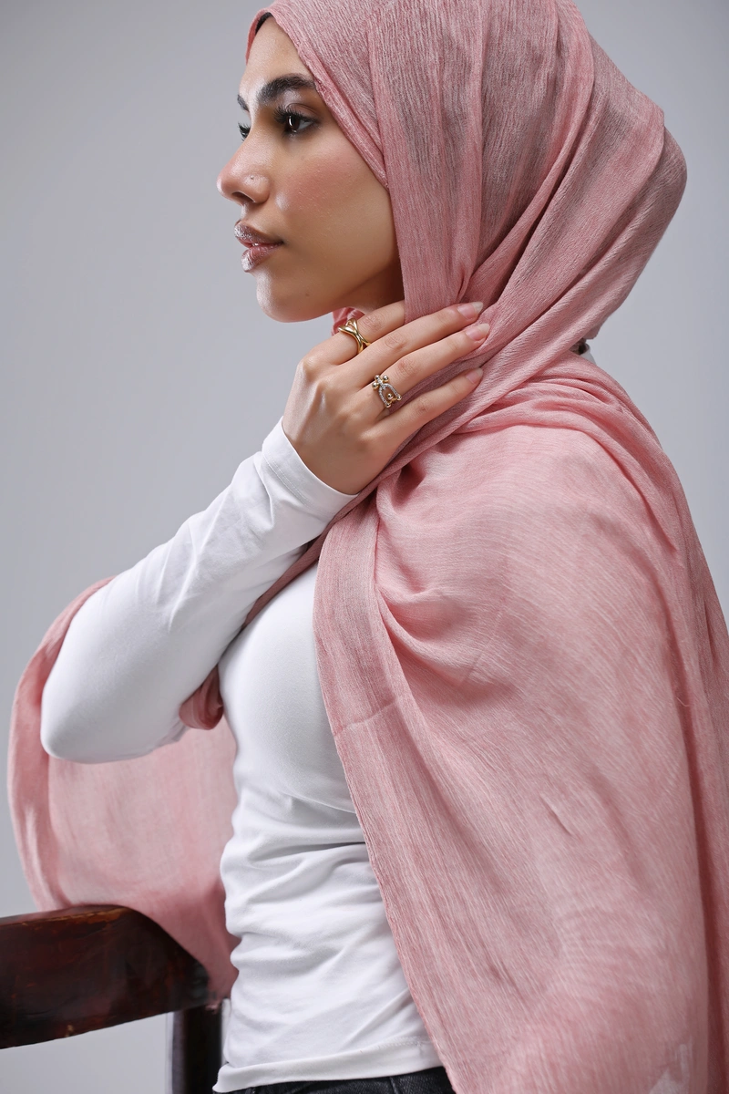 Elevate your everyday look with our Light Pink Ruffled Hijab — soft, breathable, and effortlessly stylish.
